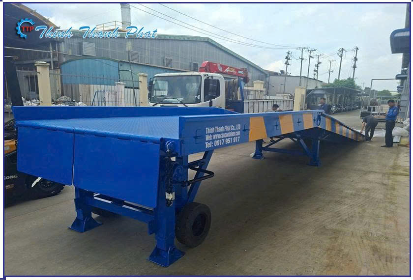- Đặc điểm: Đây là phiên bản thu gọn của cầu dẫn xe nâng di động, thường được sử dụng trong các trường hợp sàn kho có độ chênh lệch nhỏ so với mặt đất hoặc sàn xe tải/container đã được hạ xuống.