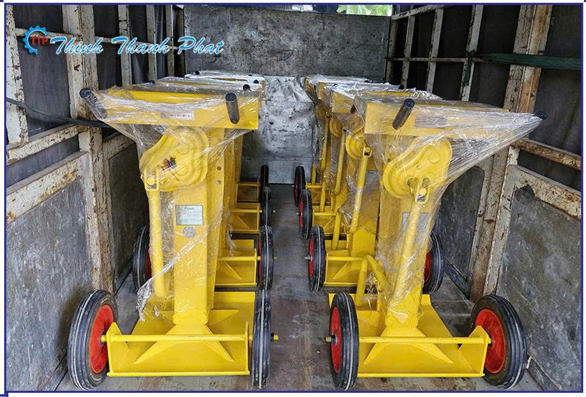 Bánh xe di động và tay cầm điều hướng: Dù có trọng lượng khá nặng để đảm bảo độ vững chắc, nhưng thiết bị thường được trang bị 2 bánh xe lớn (thường là bánh cao su đặc hoặc nhựa PU) và tay cầm thiết kế theo nguyên lý đòn bẩy. Điều này cho phép một nhân viên kho có thể dễ dàng di chuyển và lắp đặt thiết bị vào vị trí chỉ trong vài giây.