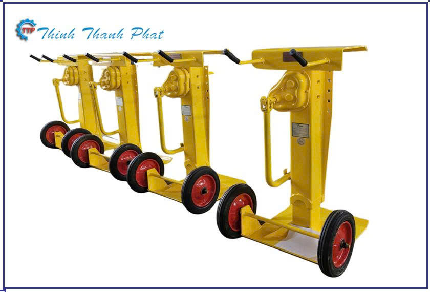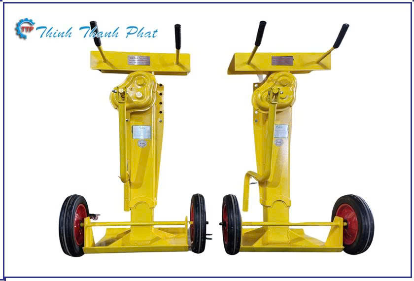Thiết kế tối ưu cho sự ổn định: Bàn đỡ phía trên thường có diện tích lớn, được bọc cao su hoặc có gờ chống trượt để bám chặt vào khung sắt của rơ moóc. Chân đế phía dưới có diện tích rộng, giúp phân tán áp lực lên mặt sàn bê tông, ngăn chặn tình trạng lún hoặc trượt khi có lực tác động mạnh.