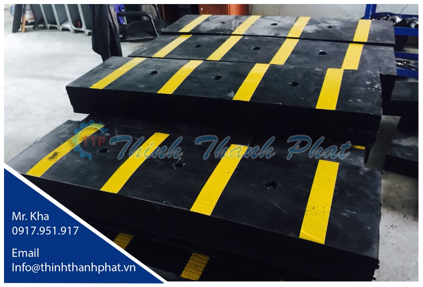 - Đệm cao su giảm chấn - cao su chống va đập còn được gọi là đệm cao su giảm chấn lùi xe tức sản phẩm được ốp vào cột bê tông, tường, cửa kho của nhà xưởng nhằm giảm thiệt hại cho phương tiện vận tải và tường kho khi xảy ra va chạm.