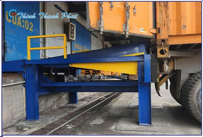 - Mép Sàn Nâng (Lip): Là tấm thép có thể mở ra và tự động điều chỉnh độ cao để gác lên sàn xe tải/container, tạo thành cầu nối.