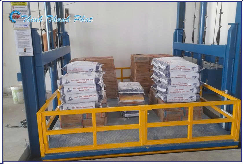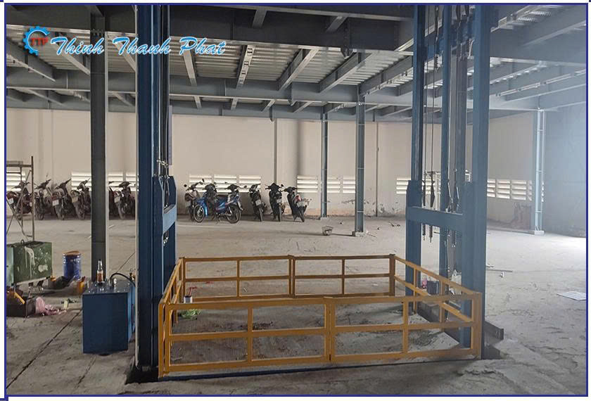 - Kết cấu: Thiết kế 4 trụ dẫn hướng (thường là thép cường độ cao) kết hợp với hệ thống xi lanh thủy lực (có thể đi kèm cáp hoặc xích) để đảm bảo độ ổn định và lực nâng đều, đặc biệt phù hợp với hàng hóa cồng kềnh hoặc cần sàn nâng lớn.