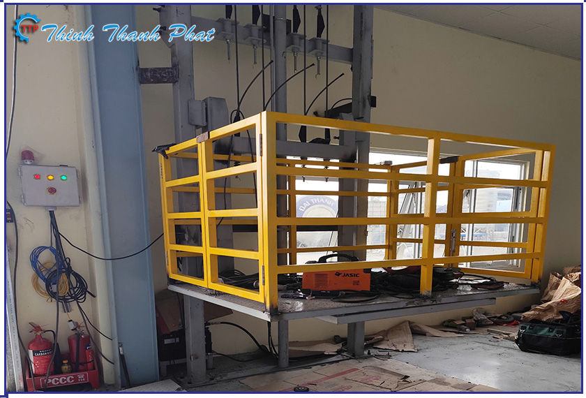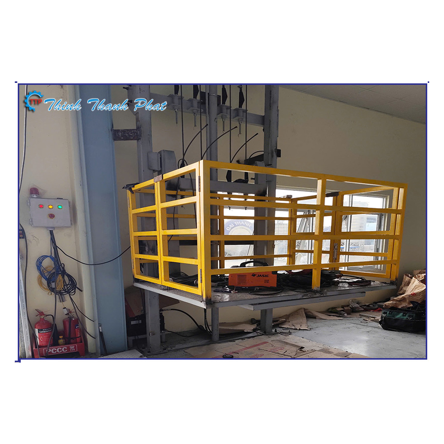 - Nhà xưởng, kho bãi: Vận chuyển pallet hàng hóa, thùng carton, nguyên vật liệu nhẹ giữa các tầng lửng hoặc tầng cao.